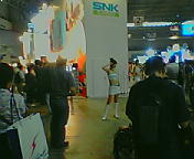 『ここは、SNKプレイモアブースです。ゲームショウの魅力の一つに、ステキなコンパニオンさん達の存在があります☆会場全体の雰囲気を盛り上げているのは、彼女達の存在も欠かせないですね☆』
