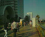 『このワクワク感っ(^o^)たまりませんよ〜vV 気持ちも弾みますっ♪こんな快晴に近い空の中、ゲームショウに訪れることができるなんてねっ。 真ん中に見えるのがあのデッカイ、タペストりー看板です☆』