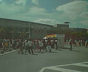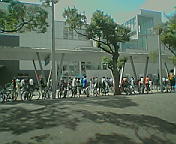 ゲームショウ会場のメッセへ向かうたくさんの人達。天気も良かったので人出は多いかも』